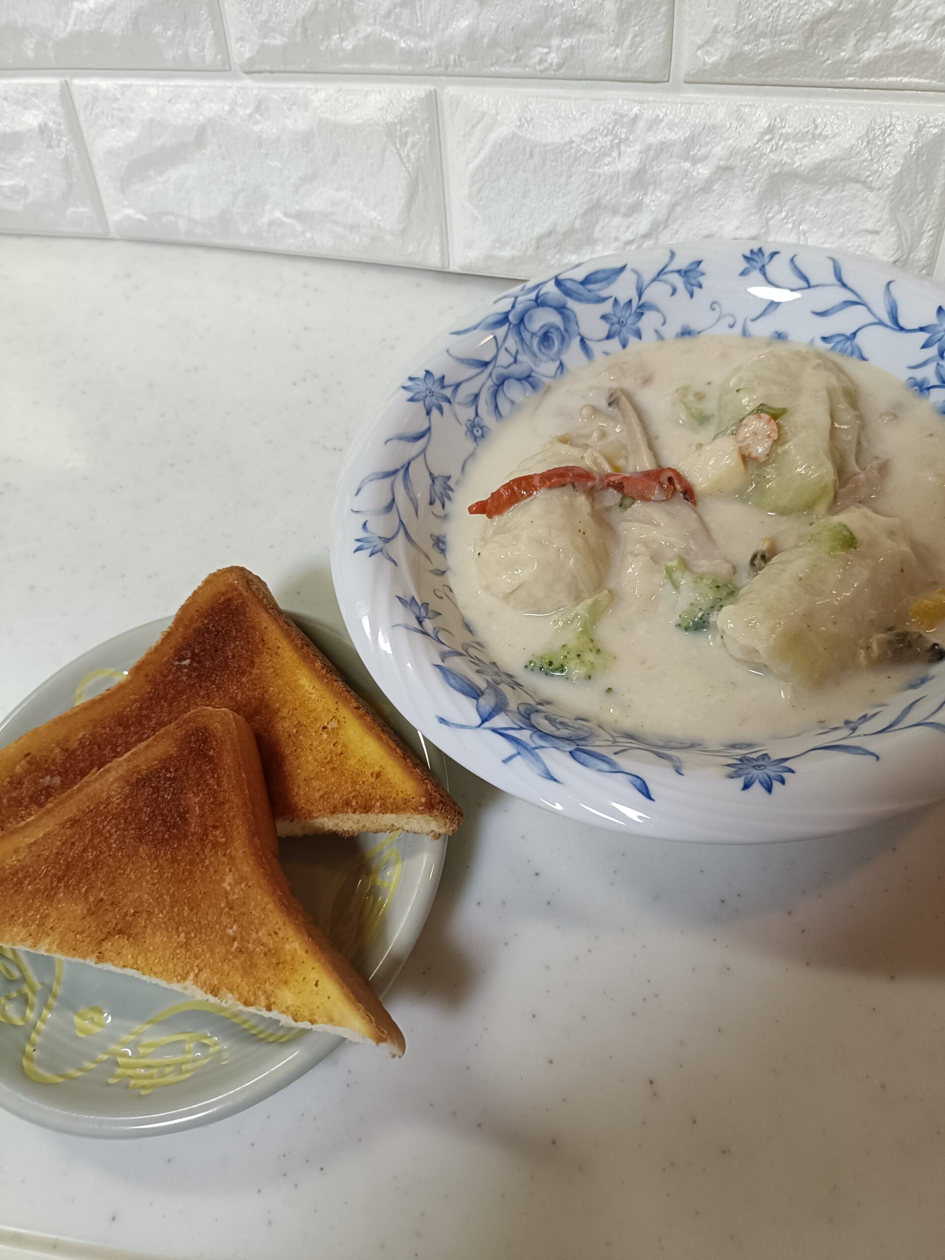 この勢いで夕食も✨ ロールキャベツのシチューにトースト、昨日の残り物などをかき集め、完成です😘💕